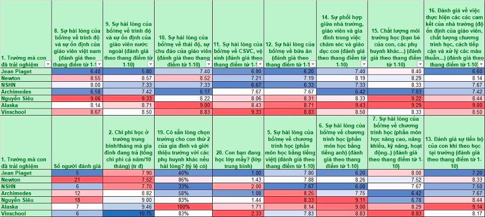 Khi nhìn bảng tổng hợp kết quả khảo sát Phụ huynh dưới đây, suy nghĩ đầu tiên của các bạn là gì?