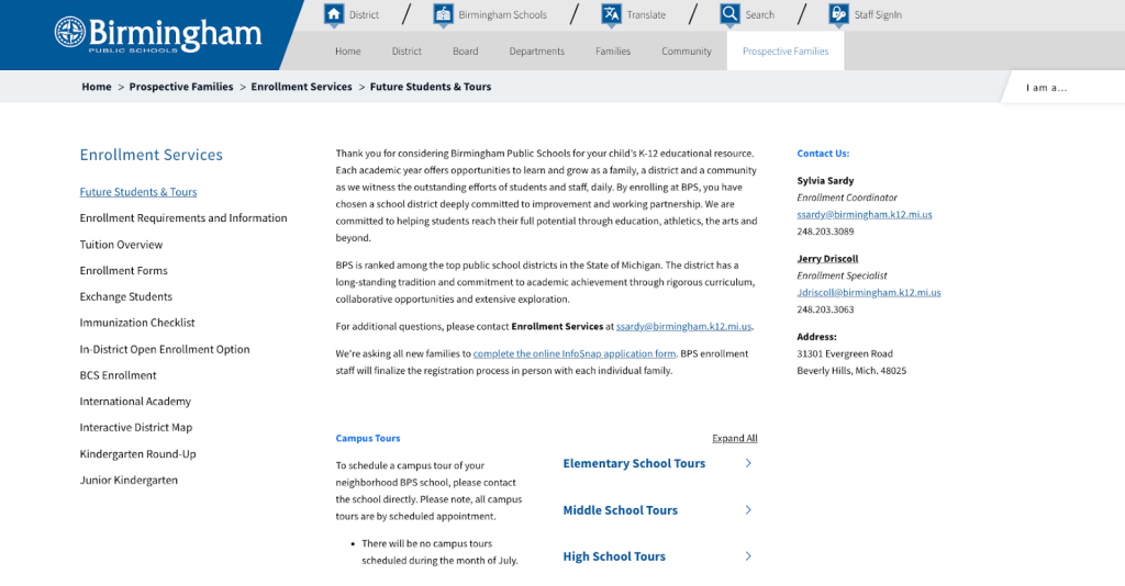 - Địa chỉ email có thể đóng vai trò quan trọng nếu Nhà trường muốn tạo cơ hội để Phụ huynh tương tác với một nhân sự cụ thể để tìm hiểu một nội dung cụ thể. Website nhà trường hoặc trong file tìm hiểu trường có thể đính kèm email cá nhân kèm theo ảnh, chức danh các nhân sự chủ chốt trong nhà trường. Điều này tạo cho Phụ huynh cảm giác được trao đổi trực tiếp với chuyên gia giúp tăng uy tín Nhà trường.