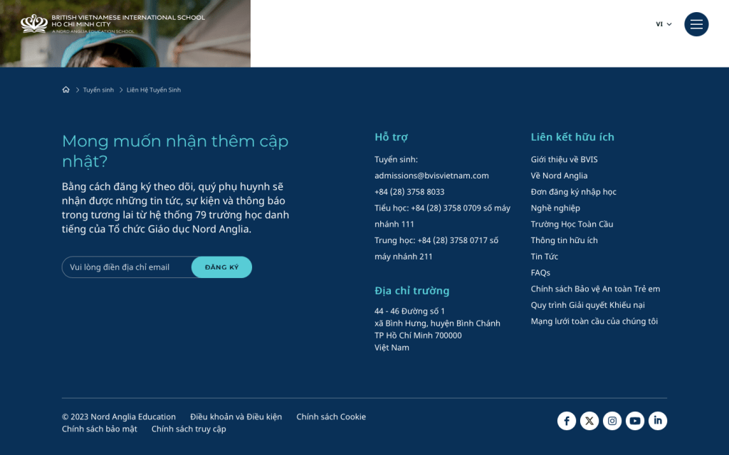 - Trong trường hợp Marketer không chắc chắn về những sự thay đổi quy trình hay thời hạn cho mùa tuyển sinh tới thì hãy có thông báo cho PHHS biết khi nào thông tin sẽ được cập nhật. Marketer có thể thiết kế form thu thập email (mail subcriber) nhận thông tin tuyển sinh cập nhật/newsletter/blog trên website thay vì chỉ có form yêu cầu điền nhiều thông tin cá nhân khác như tên con, số điện thoại,..